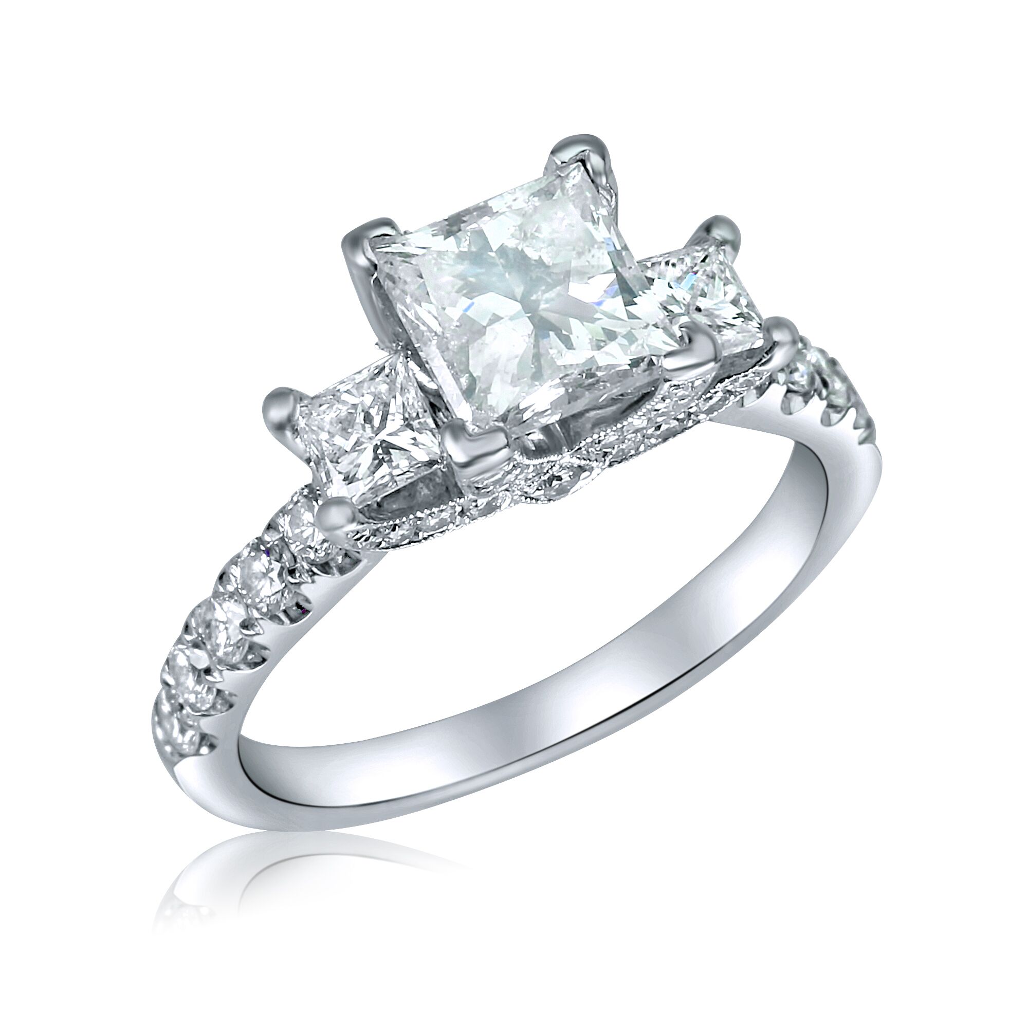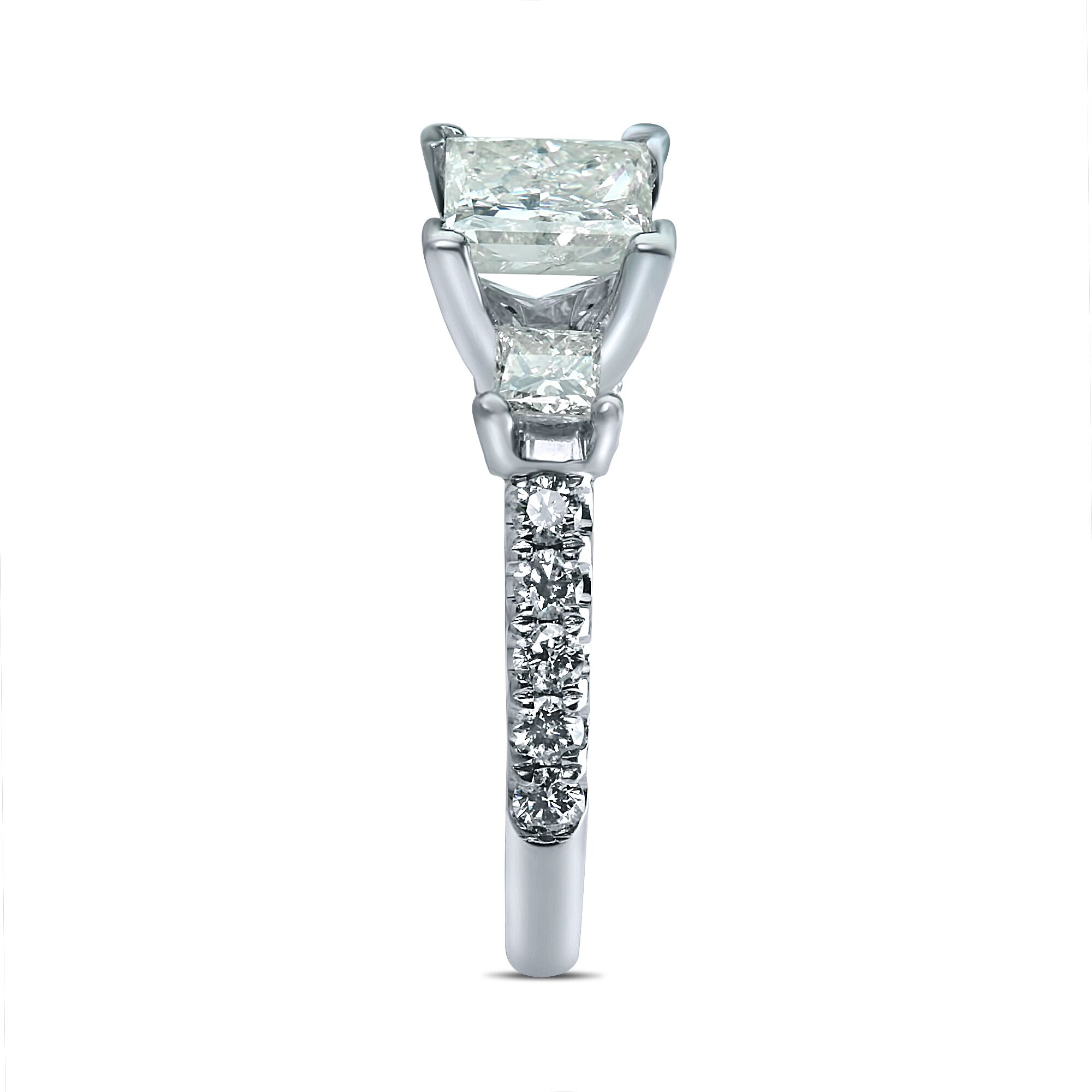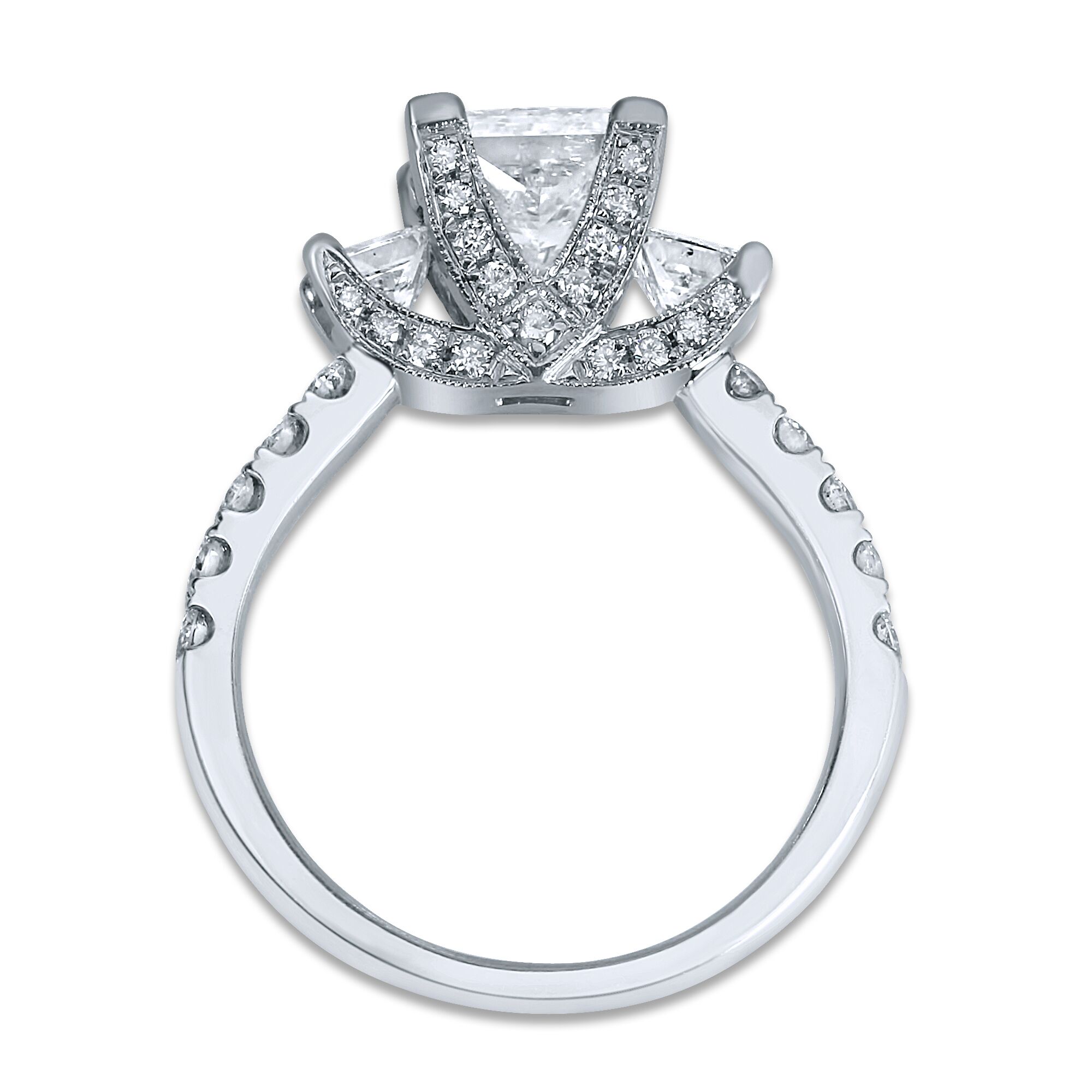 1 1/2cttw Three Stone Princess Cut with Side Diamonds and Ribboned Sides