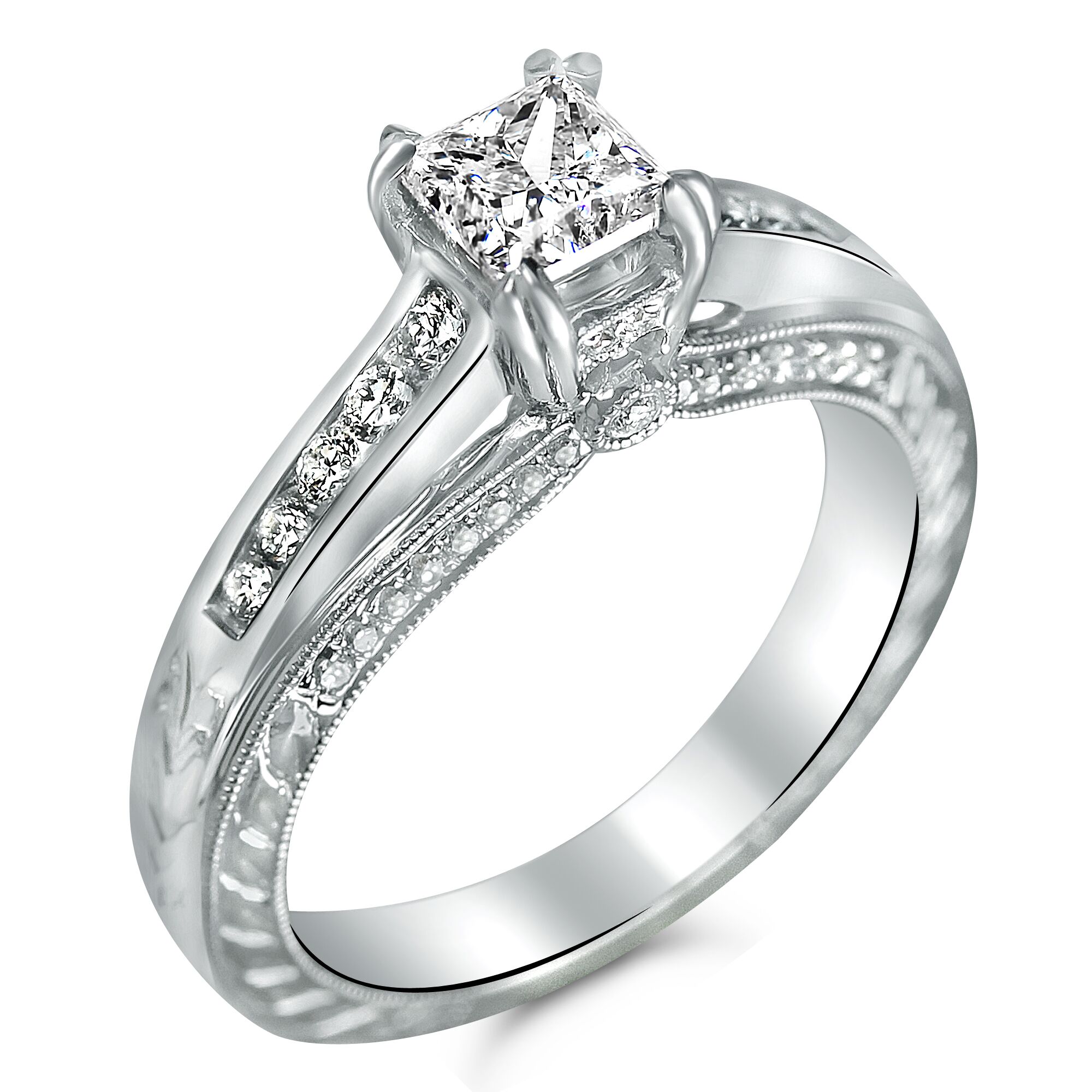 1 1/4 cttw Antique Style Engagement Ring with Filgree and Princess Cut Center