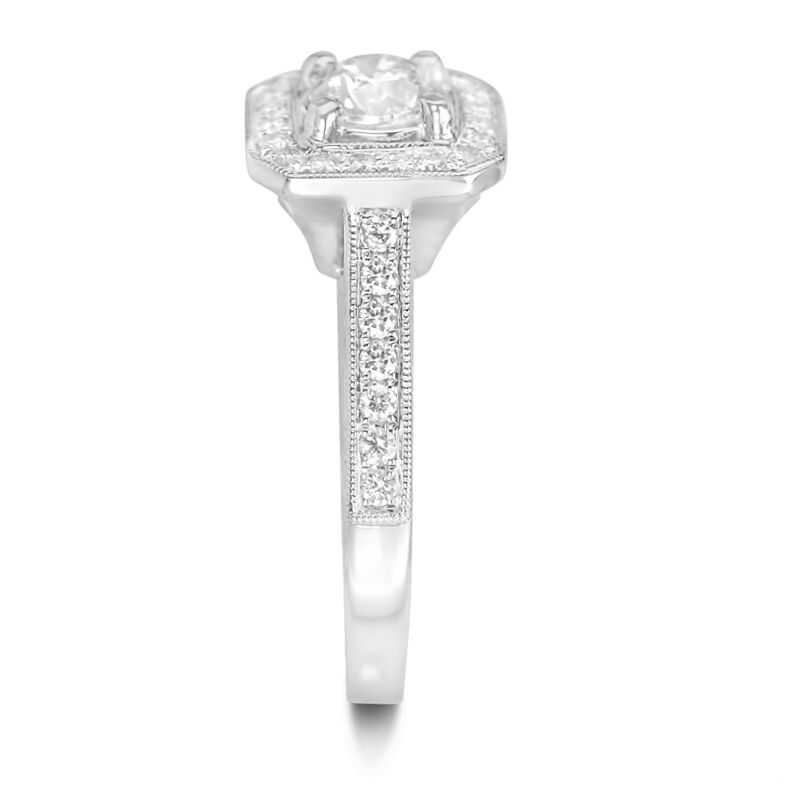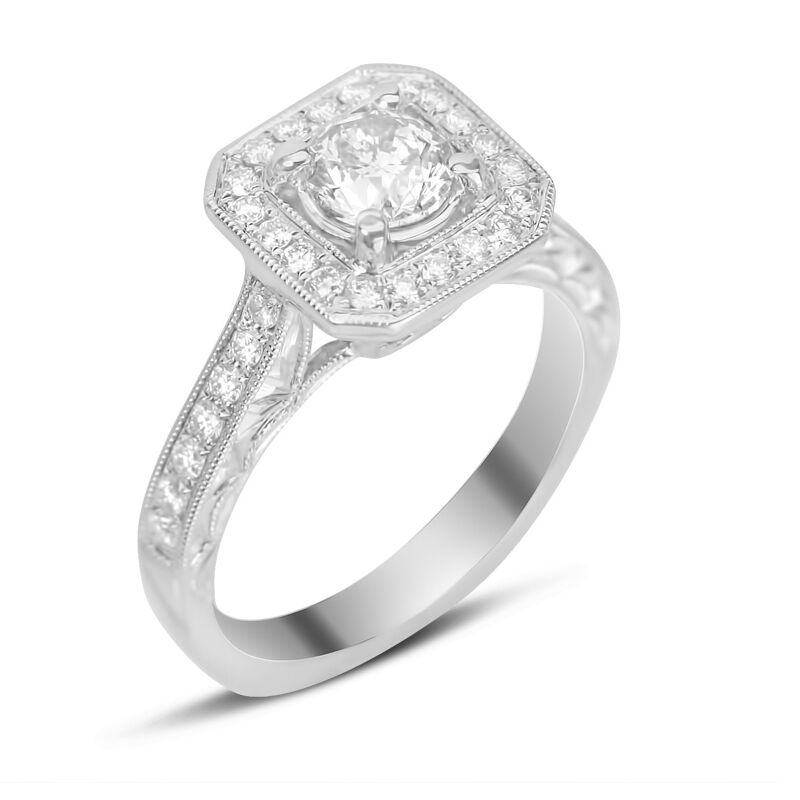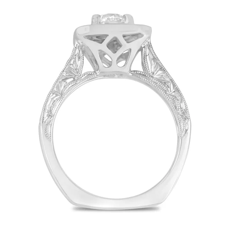 1 1/4cttw Engraved Design Cushion Halo with Round Center