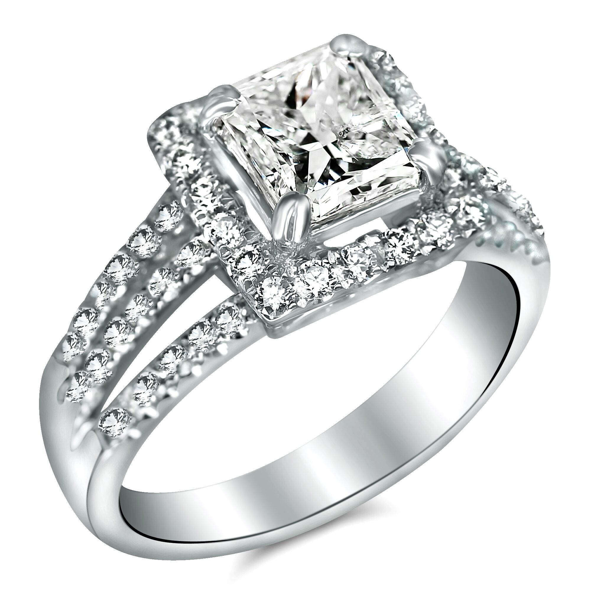 2 1/4cttw Triple Shank Princess Cut Halo Ring