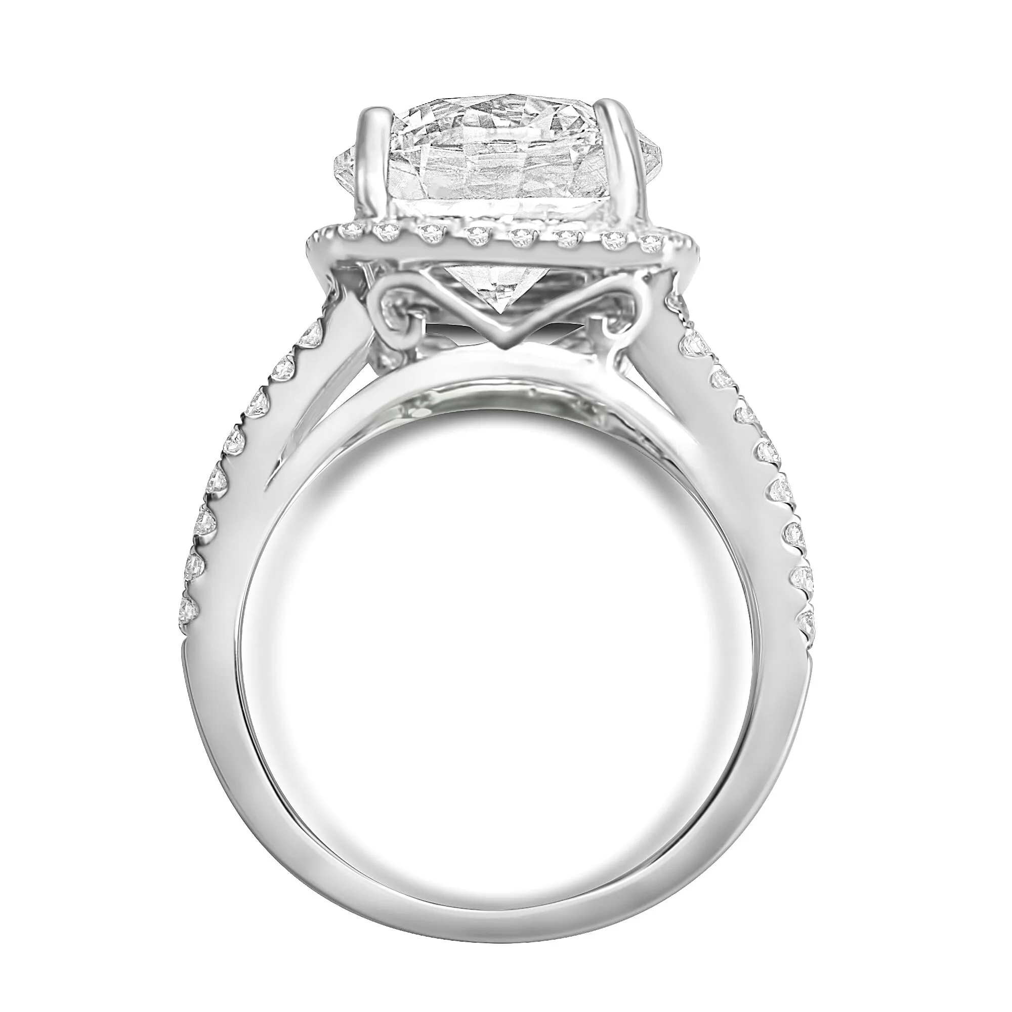 3 3/4cttw Split Shank with Halo and Round Diamond Center Ring