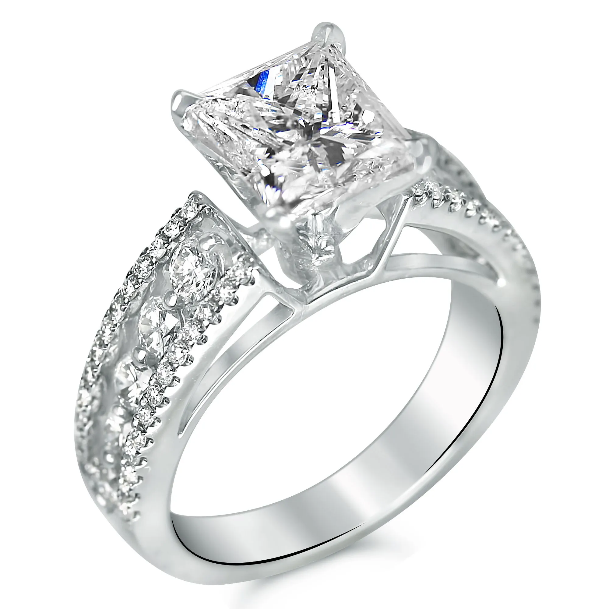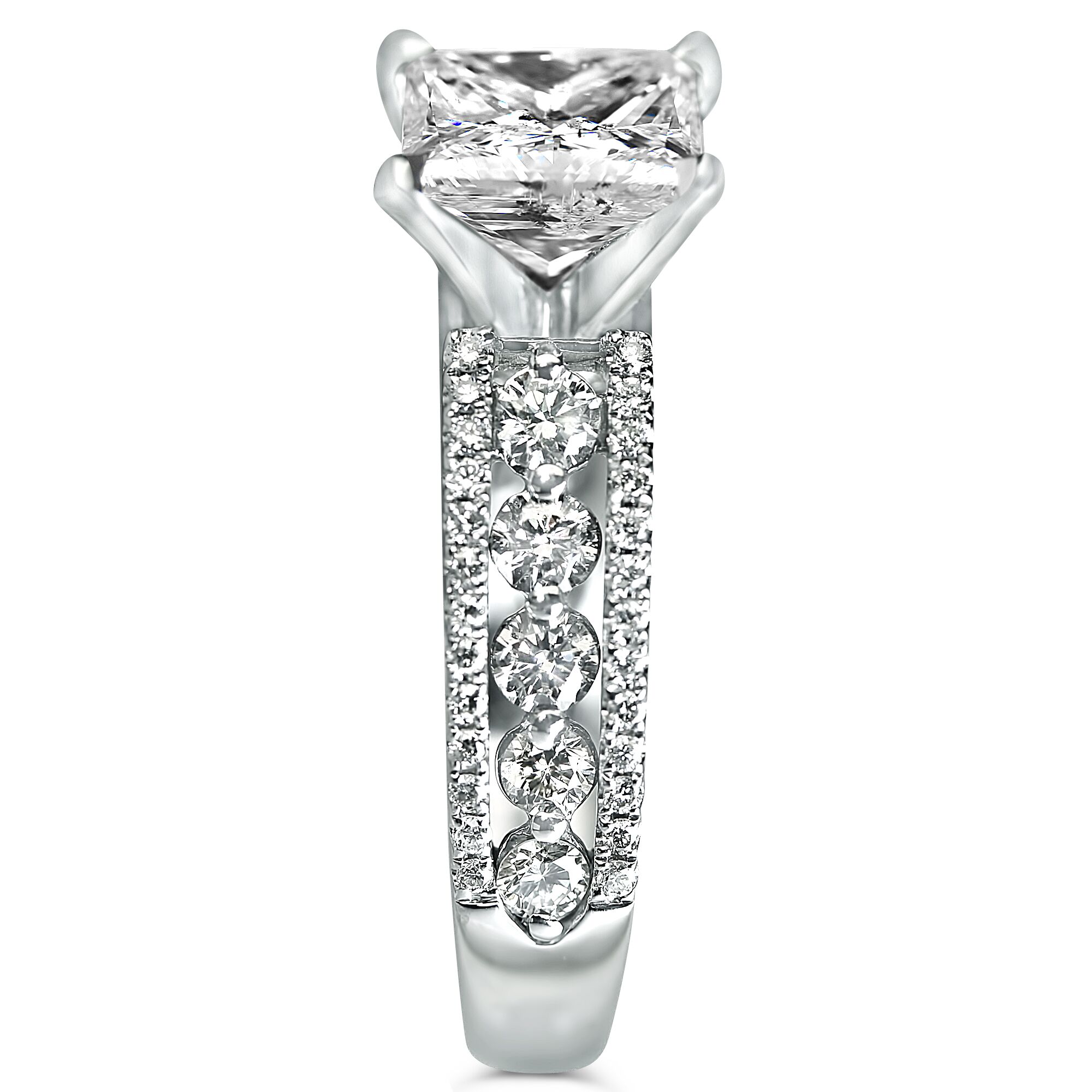 3 cttw Large Shared Prong and Micro Pave Engagement Ring