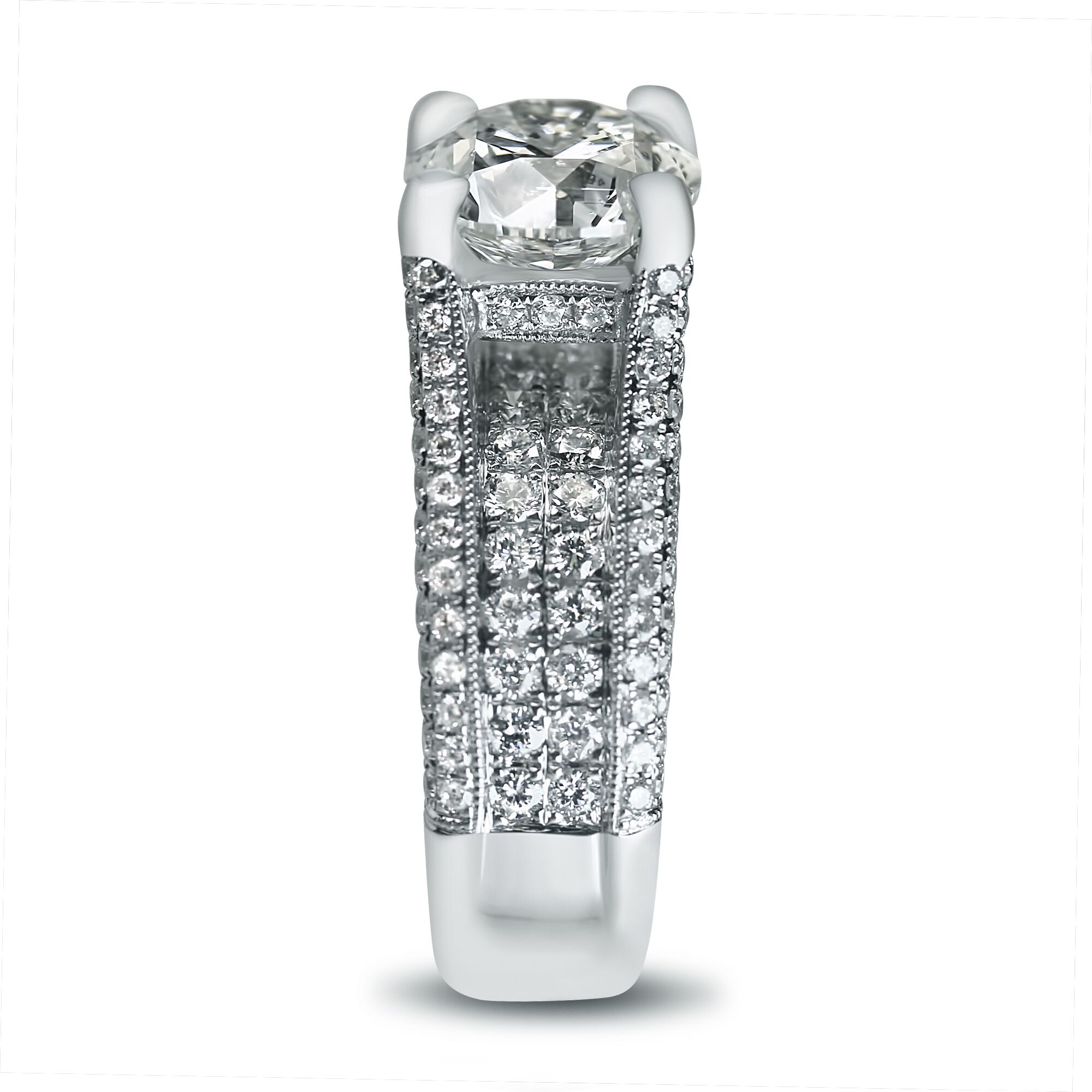 Round Center Stone on a Large three sided diamond Micro Pave Setting