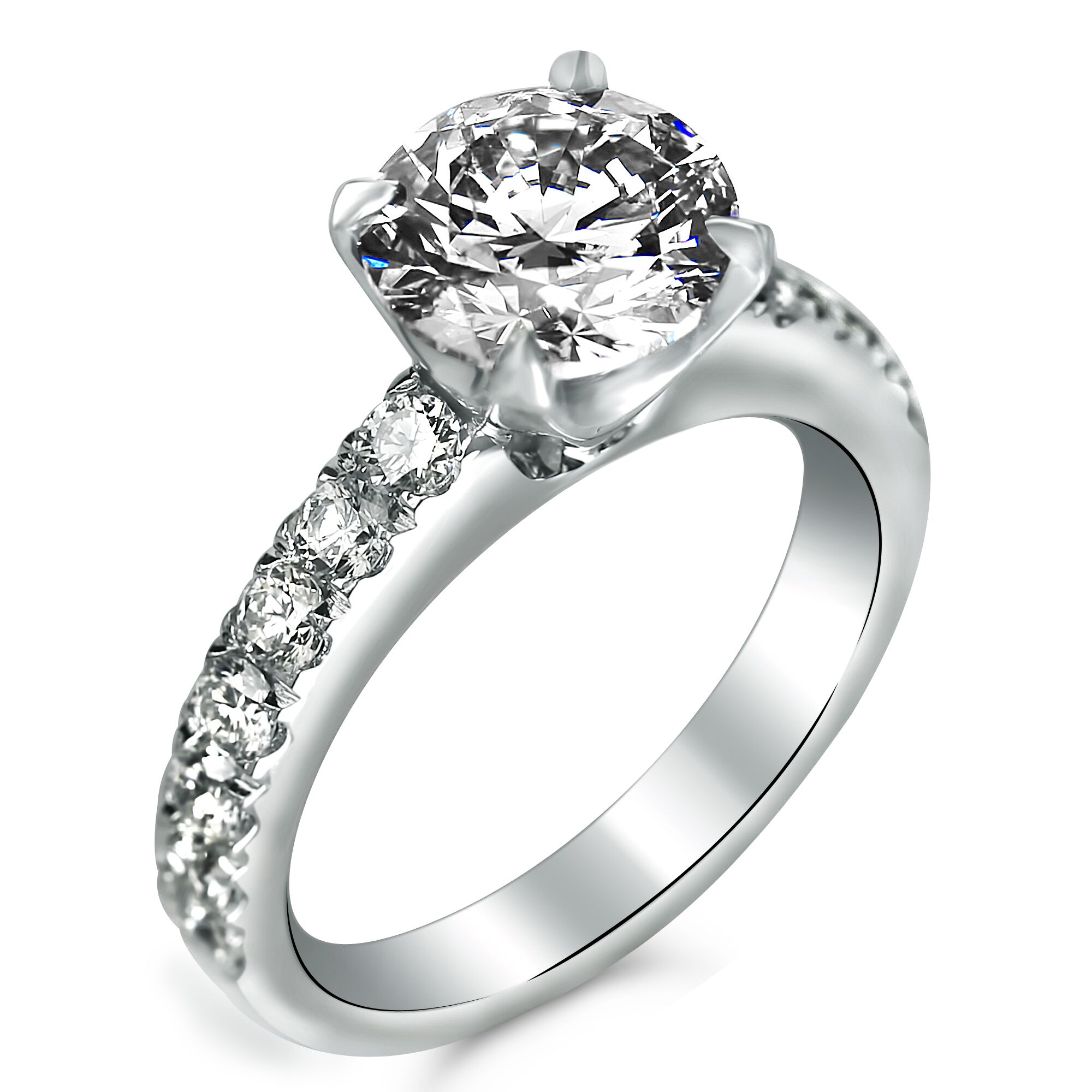 Elegant 18k white gold Round Center Diamond  ring with Whale tale set diamonds on band.